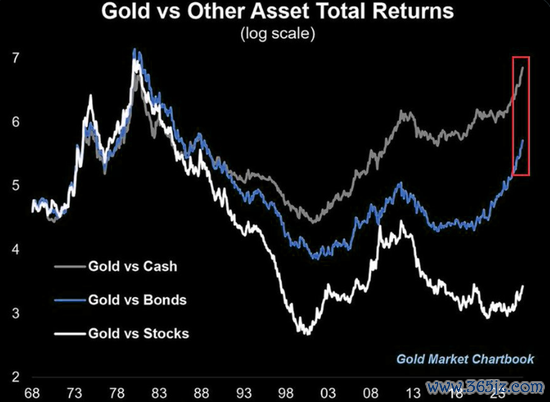 Top Down Charts的数据分析走漏,金价相对于现款的价钱已处于至少1960年代以来的最高水平,并认真跳跃了1980年的峰值;相对于好意思国国债的价钱也处于1980年代末以来的最高点。可是,若以金价与标普500指数的比率揣摸,当今水平仍比1980年的峰值低50%。这标明,尽管相对于现款和债券显得奋斗,但在相对于股票的维度上,黄金的飞腾可能仍有空间,以至处于行情的早期阶段。
